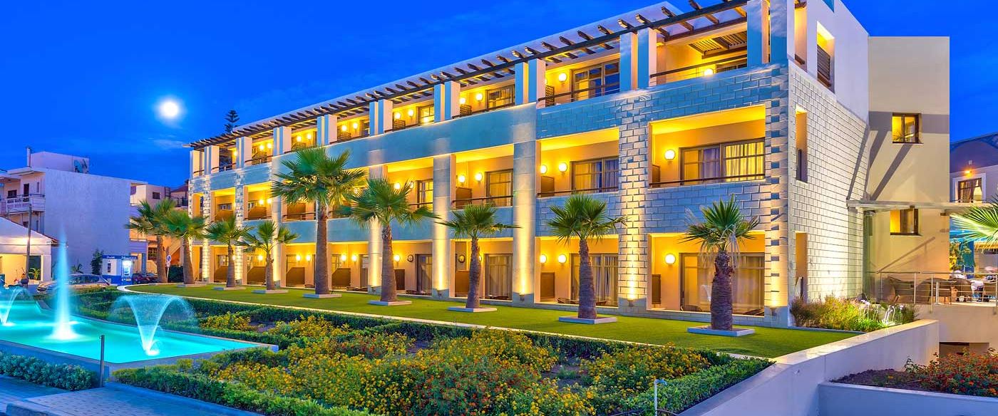 4* Agapi Beach 4* Aks Minoa Palace 4* Aktia Lounge Hotel & Spa 4* Aldemar Cretan Village Beach Resort 4* Almyrida Beach & Residence 4* Appolonia Beach Resort & Spa 4+* Arina Beach 4* Asterion Hotel Suites & Spa 4+* Atlantica Creta Paradise 4+* Atlantis Beach Hotel 4* Belvedere Imperial Hotel 4* Belvedere Royal Hotel 4* Blue Aegean Suites & Apartments 4* Cactus Beach Hotel & Bungalows 4* Candia Park Village 4* Civitel Creta Beach 4* Eliros Mare Hotel 4* Galini Sea View Hotel 4+* Grecotel Marine Palace & Aqua Park 4+* Grecotel Meli Palace 4*