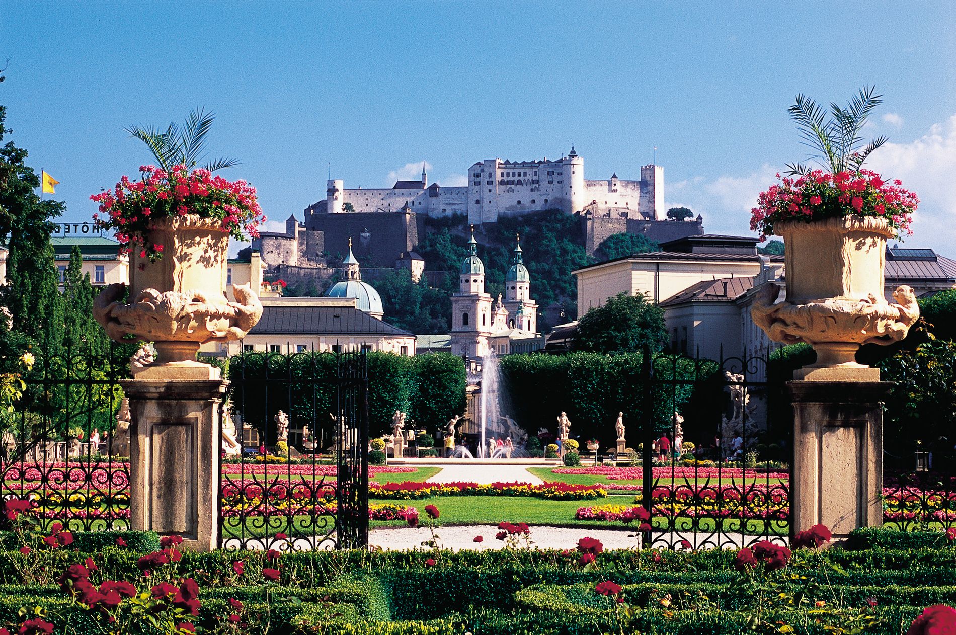 Зальцбург називають німецьким Римом. Основна частина пам'яток розташована в старому місті на лівому березі річки Зальцах. Зальцбург - яскравий приклад барочного міста. Близько Соборнлї площі на Резіденцплац розташовується мармуровий Резіденцбруннен - один з найбільших фонтанів в світі епохи бароко. Підтвердженням цьому є сад Мірабель з терасами, мармуровими скульптурами і фонтанами.