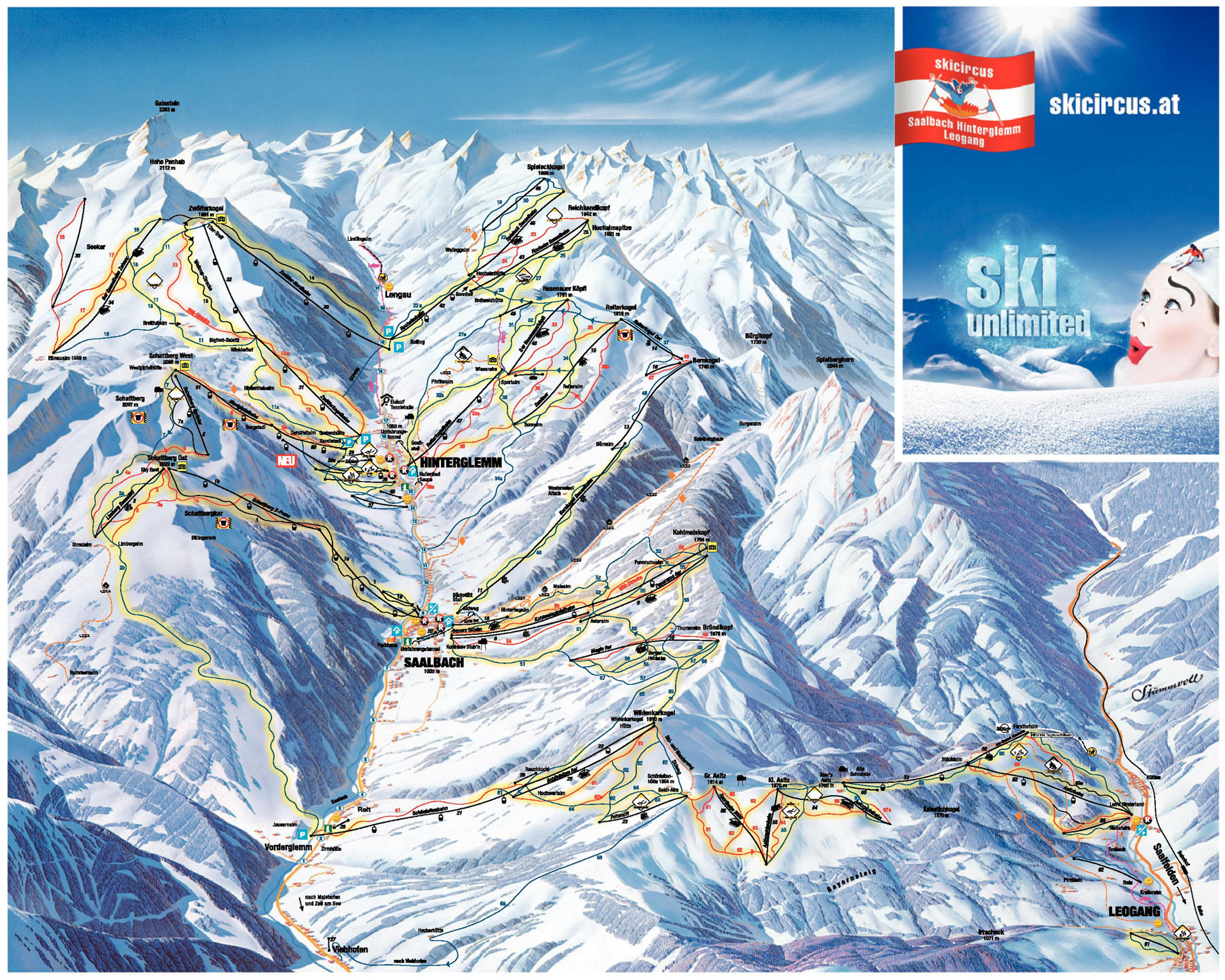 Головна особливість гірськолижного курорту Заальбах-Хінтерглемм - перетин трас різної складності. Велика кількість цікавих спусків дозволяє лижникові цілий день кататися на околиці, не використовуючи двічі один і той же підйомник.